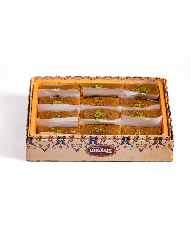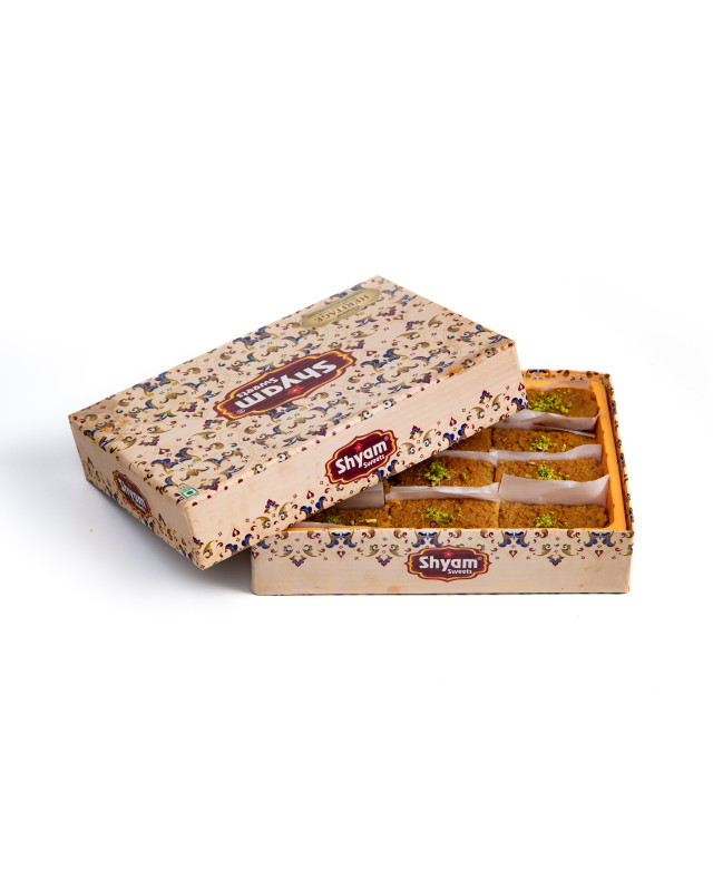 Milk Cake is a traditional Indian sweet made by slow-cooking milk until it thickens and caramelizes, giving it a distinct two-toned texture and deep flavor. Sweetened naturally and often garnished with cardamom and chopped dry fruits, this mithai is rich, dense, and grainy. Often enjoyed during festivals and special occasions, Milk Cake is a timeless favorite across Indian households.