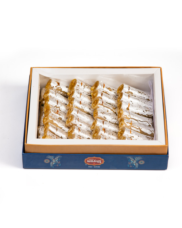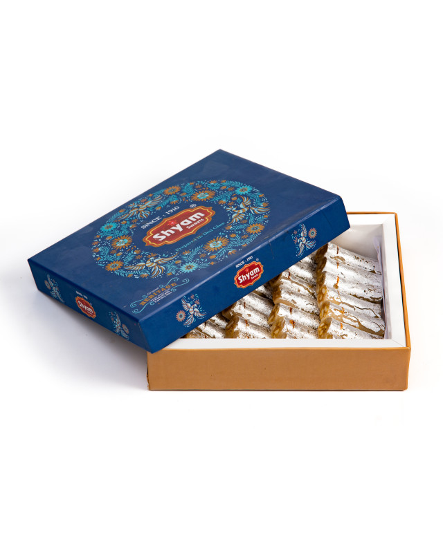 Kaju Roll is a luxurious Indian sweet made from finely ground cashew nuts, rolled into smooth cylinders and filled with a rich, ghee-based stuffing, often flavored with dry fruits, cardamom, or pista paste. The result is a creamy, melt-in-mouth experience that blends texture and taste beautifully. A classic in festive and wedding sweet boxes, Kaju Roll is loved for its refined sweetness and premium feel.