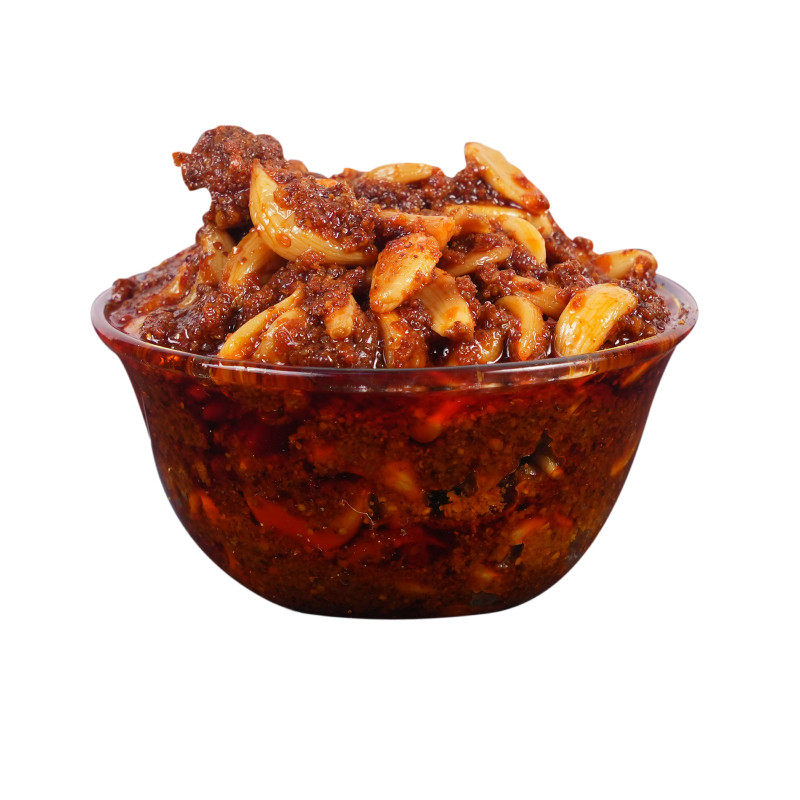Vellulli Pickle is a cherished Andhra delicacy prepared with plump garlic cloves soaked in gingelly oil and infused with fiery spices. The natural pungency of garlic is enhanced with the heat of red chilies, creating a pickle that's robust, flavorful, and full of character. Each bite delivers a rich and lingering taste that transforms even simple meals into feasts. Loved for its intense aroma and zesty profile, this pickle is a staple in many South Indian homes. Slow-aged for deeper flavor and made without any artificial preservatives.